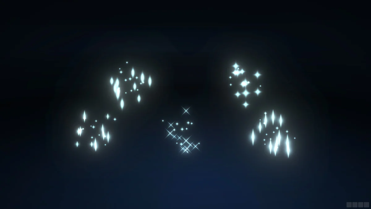 Five sparkle variations are spread across three emitter types, giving the pack a compact but focused range of options. Those emitters cover the most visible parts of the library: