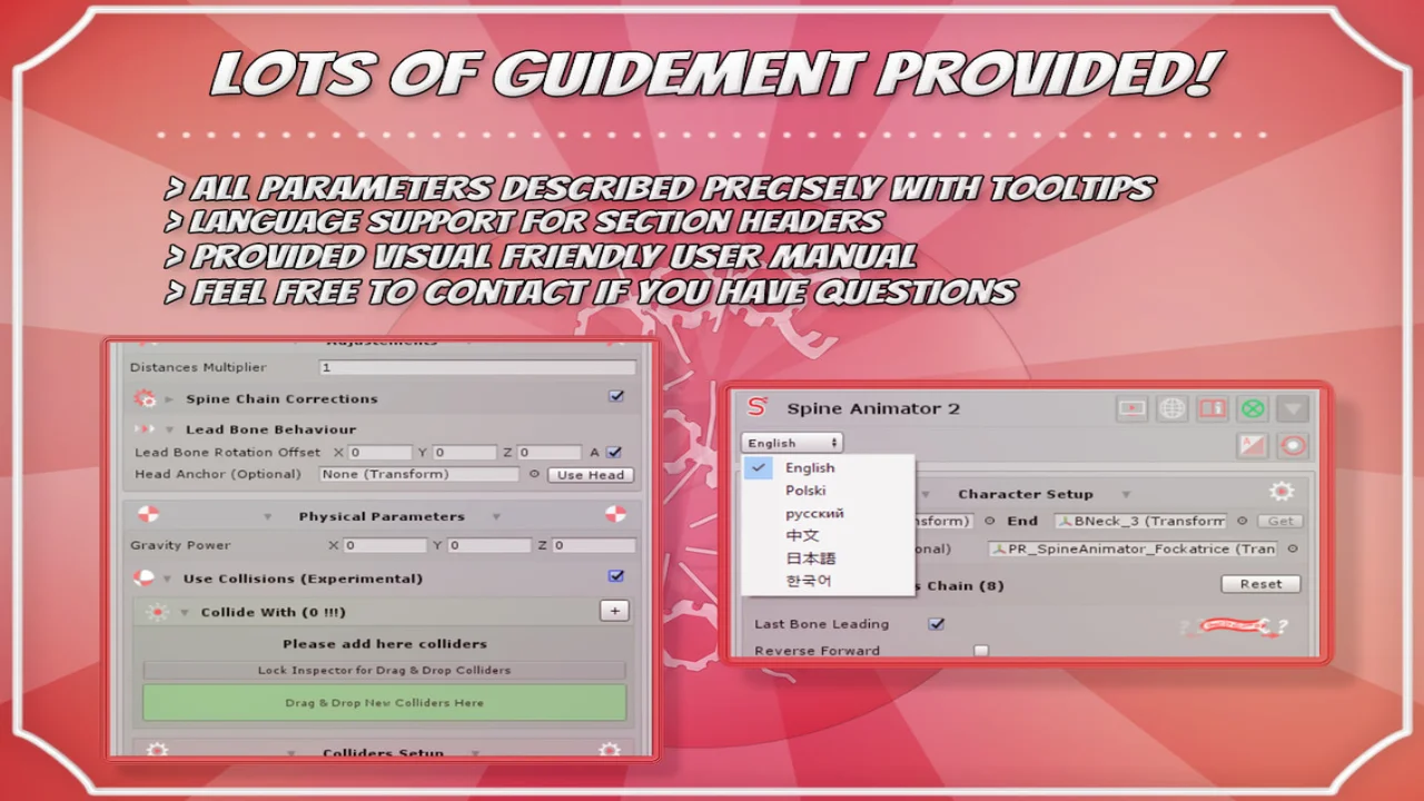 ☄️ Spinal Animator is component which animates your skeleton’s spine bones accordingly to movement without loosing any keyframed animation motion. It’s simulating real animal-like spine movement without any need of additional animating or coding.