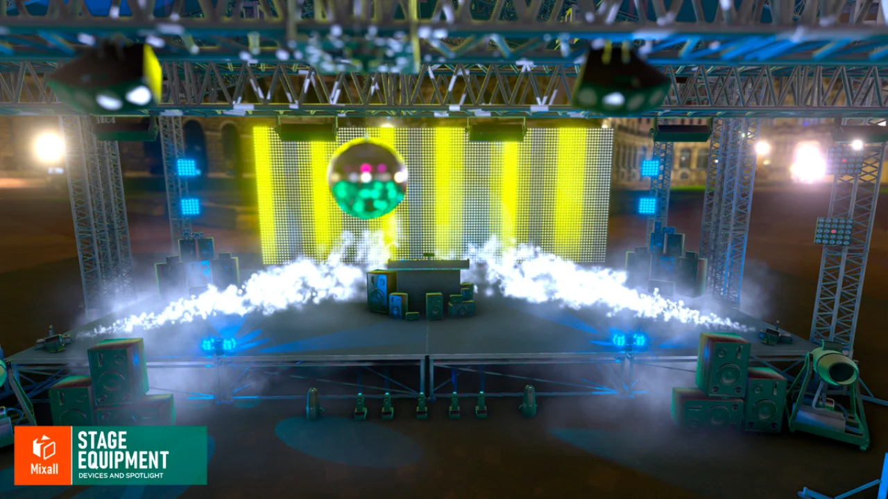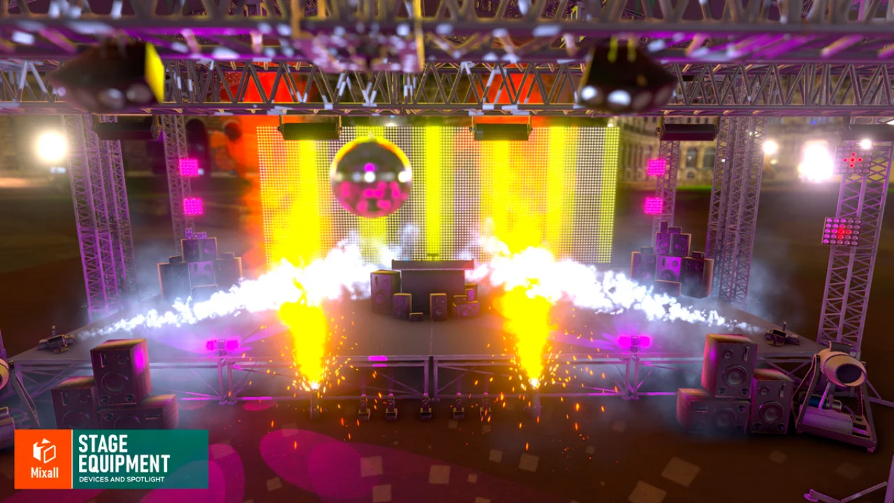 This project will help you create your own stage for performances, a nightclub, a show and much more. There are effects of lighting equipment, imitation of smoke and fire.
