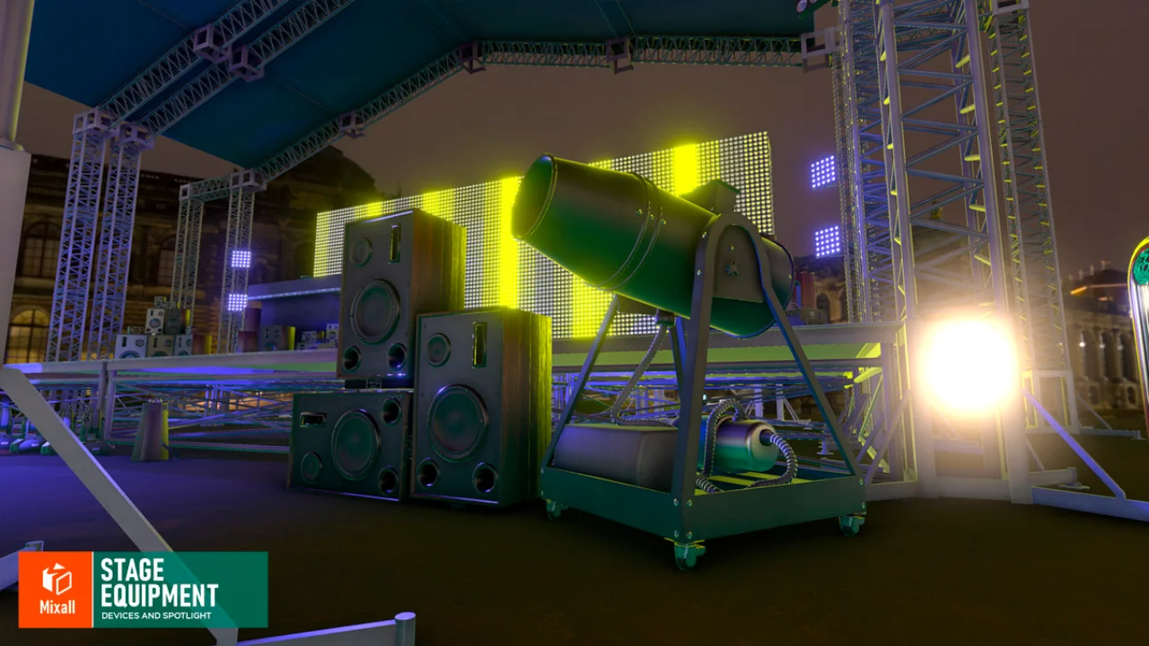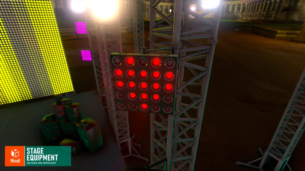 Stage equipment – devices and spotlight is a set of lighting effects, a street scene from which you can create your project for VR.