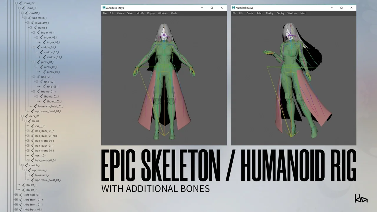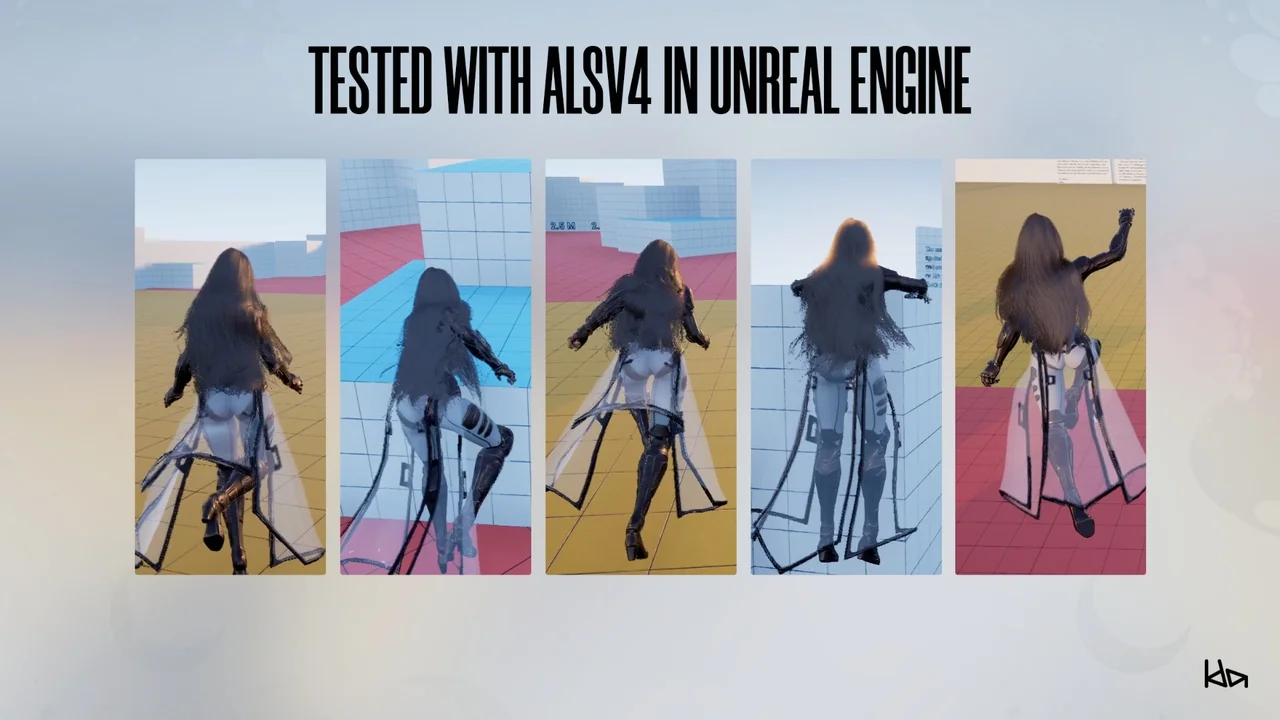 The character rig is based on the standard Unreal Engine 4 Mannequin skeleton. Therefore, retargeting existing animations is a simple and efficient process. The developer has kept the main bone hierarchy untouched for maximum compatibility. However, additional bones have been added to support physics for hair and clothing.