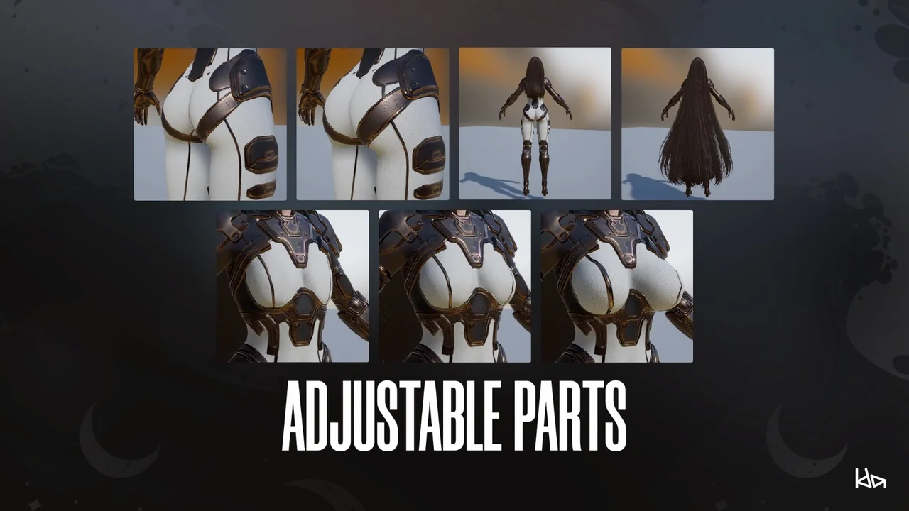 One of the standout features of this character is its modular design. You can easily add or remove specific parts of the outfit to suit your needs. Because the body is sliced into pieces, you can avoid mesh clipping under clothing. Furthermore, a full-body version is included underneath the gear. This flexibility allows creators to customize the look for different gameplay scenarios.