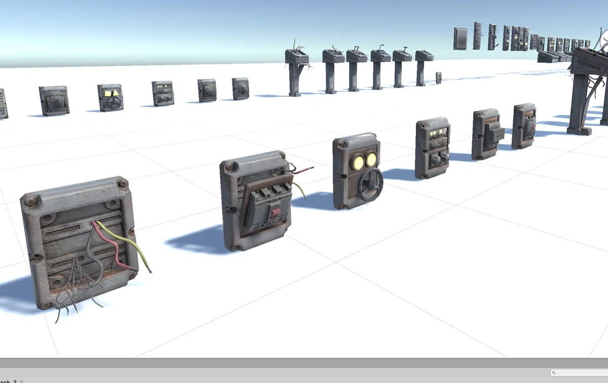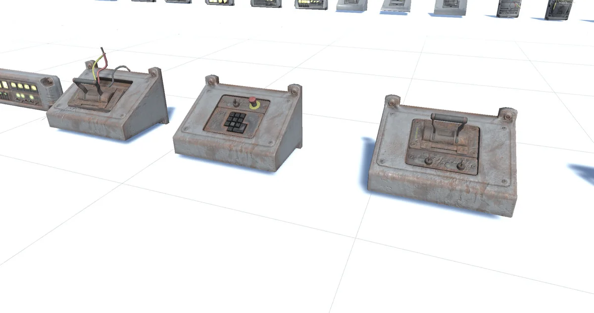 A significant technical feature of this package is the inclusion of rigging for specific mechanical components. In the latest updates to the set, the creator implemented rigs for models that feature levers and buttons. This setup allows for direct animation or interaction within the engine, facilitating gameplay mechanics where a player might need to toggle switches or pull levers to activate machinery. To support this interactivity, the package also includes relevant sounds and pre-configured colliders, ensuring the objects are ready for physics-based environments immediately upon import.