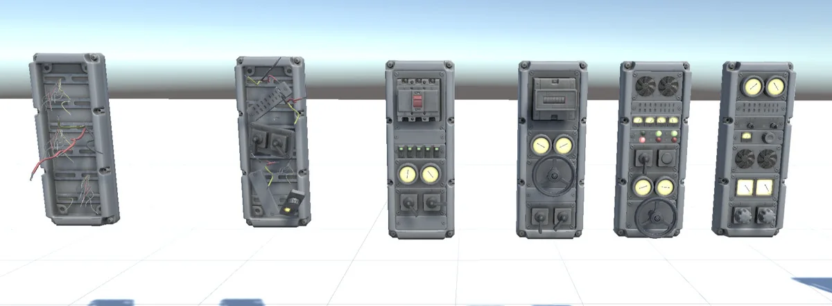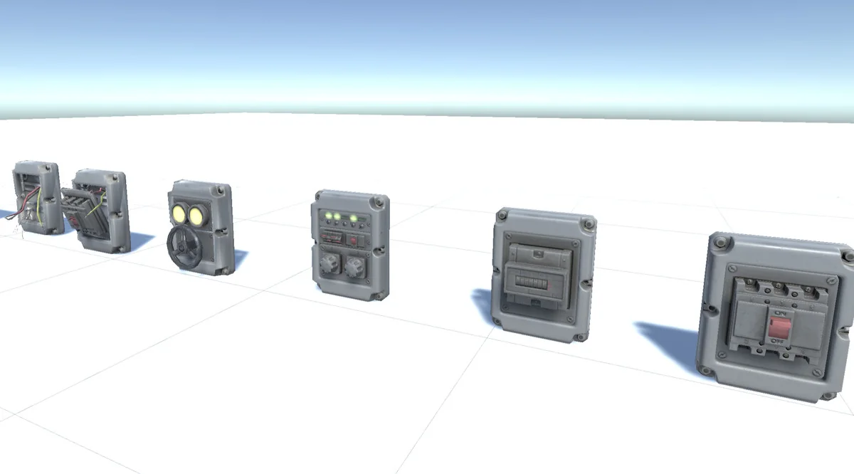 With a total asset count of 231 items—including the meshes, materials, and sounds—the pack functions as a modular toolkit for interior industrial design. The assets are compatible with Unity versions starting from 2019.3.11. Because the package includes two distinct materials and eight textures to cover the 53 models, it maintains a consistent visual language across all industrial props. This consistency is vital for developers building out large-scale factories or electrical rooms where multiple different panels and switchboards must look like part of the same unified system.