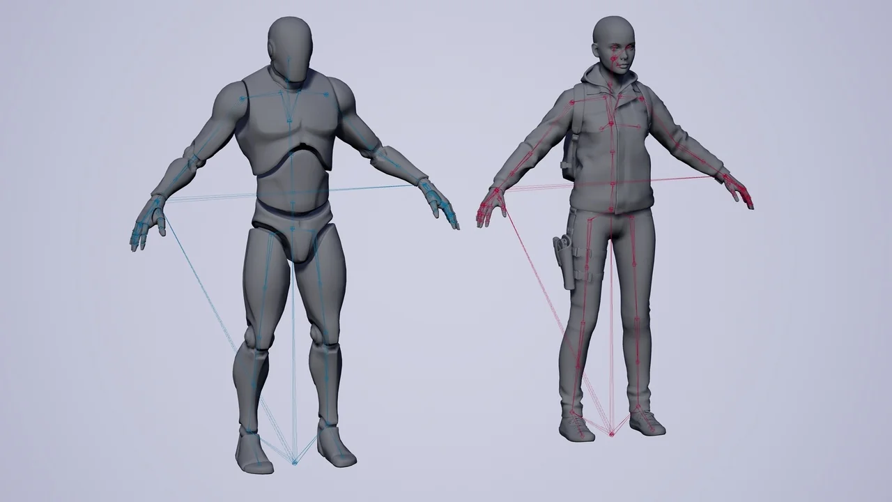 These extra head bones allow for realistic facial expressions. Furthermore, the spine has two extra bones for the chest area. This ensures that body movements look natural during gameplay. Finally, a dedicated hair socket is available for ponytail meshes.