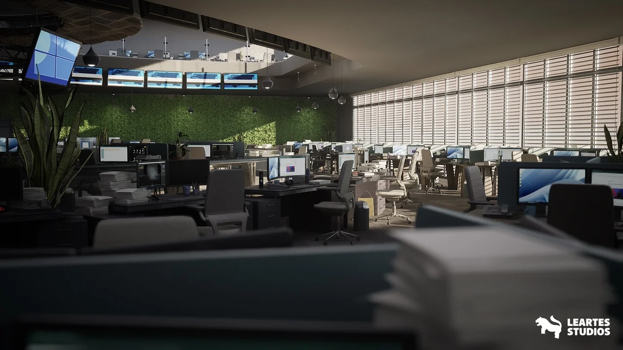 The Newsroom Environment ( Newsroom Newsroom Office News Paper Interior 3D ) is a comprehensive asset pack designed for modern game development. It captures the high-energy atmosphere of a busy media hub as the sun rises. Consequently, the scene feels alive and functional for any digital project.