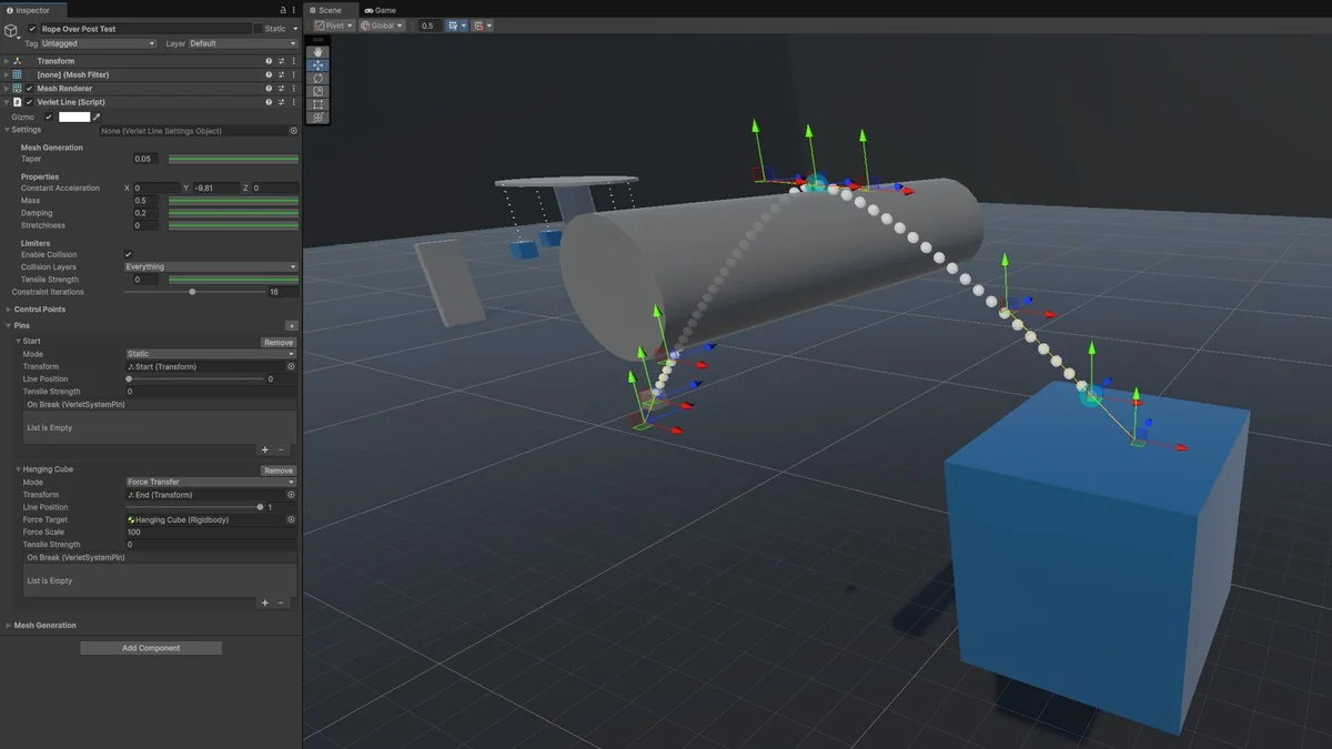 At a practical level, the toolkit centers on effects that can change how a scene moves and reacts: ropes, buoyancy, softbody-like behaviour, force effects, and projectile trajectory prediction. Those are the kinds of mechanics that tend to show up in game systems where movement needs to feel responsive rather than static.