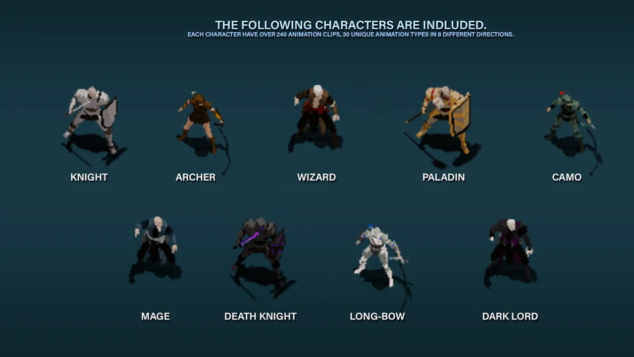 - A Staggering 2160 Total Animation Clips: With 9 characters, 8 directions, and 30+ animations each, this pack contains a massive library of 2160 total animation clips, offering incredible value and saving you hundreds of hours of work.