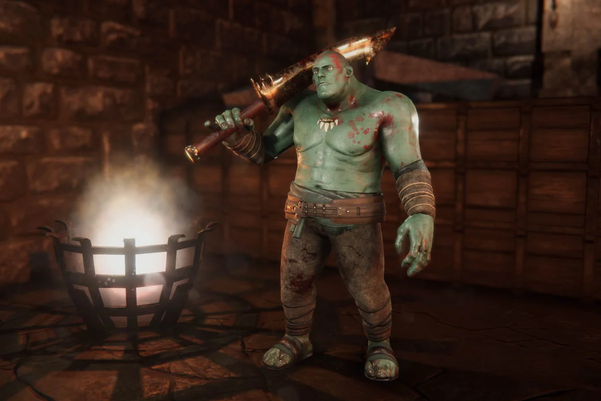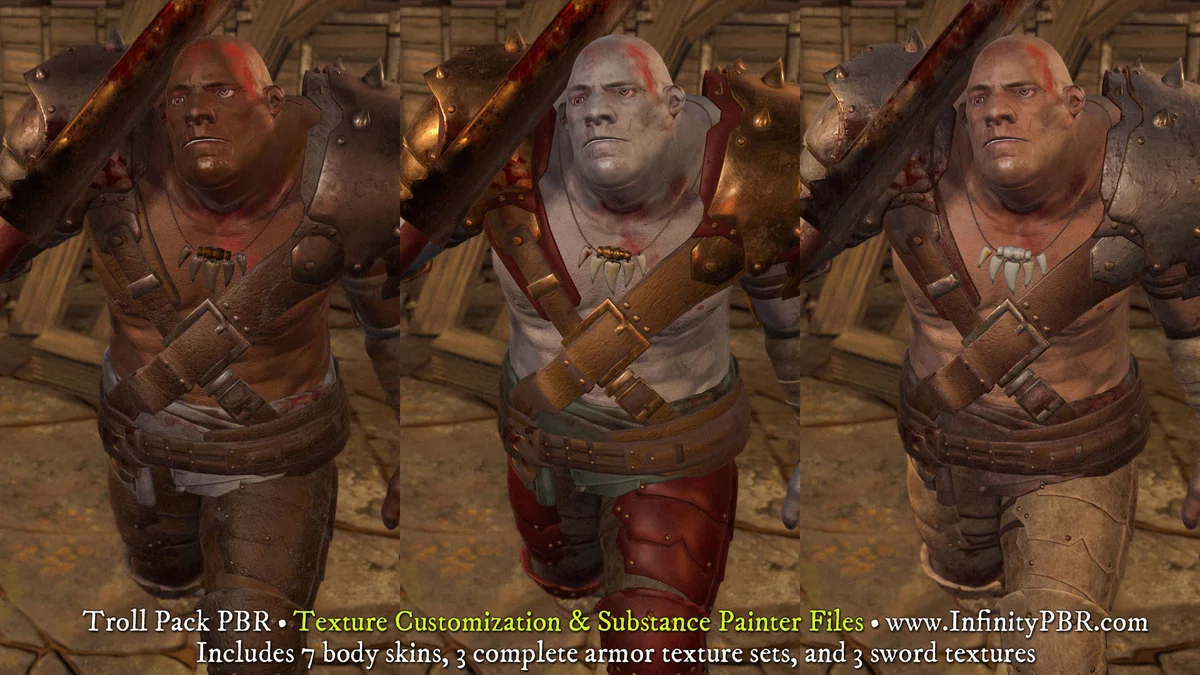 In a live production environment, this troll functions as a highly adaptable creature base. Instead of serving as a single-purpose enemy, the combination of mesh morphing and modular equipment allows it to fill multiple roles, from a basic unarmored grunt to a heavily armored boss. By utilizing the provided Substance Painter files, developers can bake their own PBR maps to match specific environmental lighting, ensuring the character remains grounded in the game’s world regardless of the chosen render pipeline.
