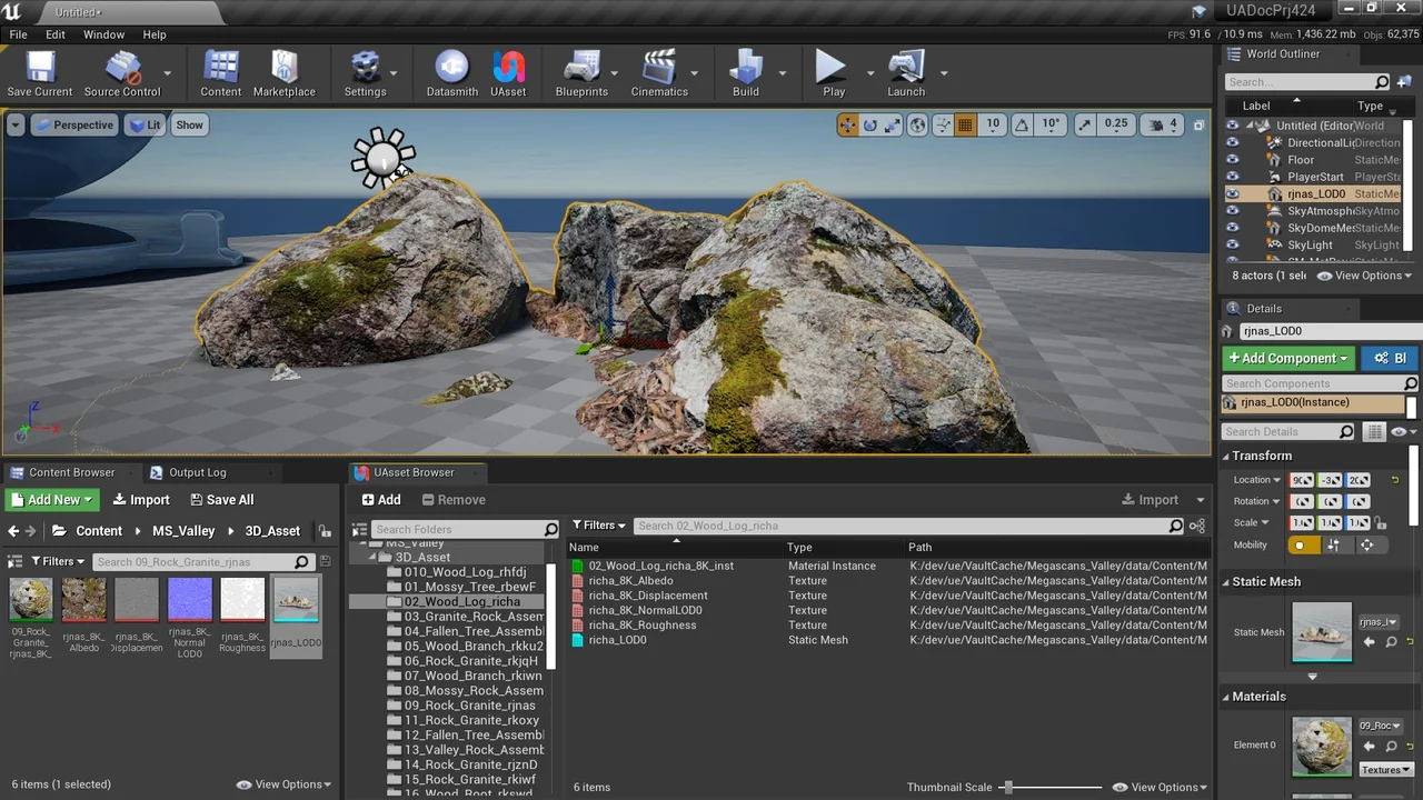 The interface is designed to look and feel familiar to users of the standard Content Browser. However, the UAsset Browser focuses specifically on external content libraries. You can preview uasset thumbnails, search through files, and filter assets based on detailed metadata. This makes it much easier to locate specific resources in large external directories or plugin folders.