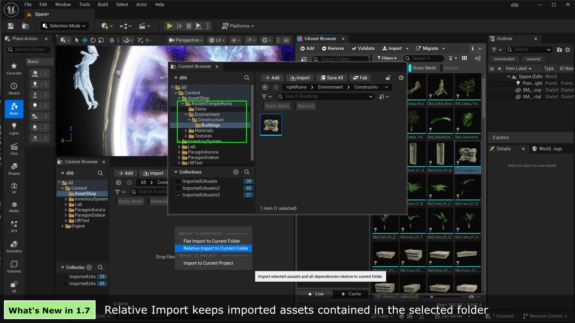Performance and flexibility are central to the UAsset Browser experience. The tool supports various import methods, including drag-and-drop and a “Flat Import” option that consolidates files into a single folder. Additionally, version 1.2 introduced a Blueprint Function Library, which allows for scripted imports to automate repetitive tasks. For those who need speed, the “Direct Copy” mode can skip dependency checks entirely.