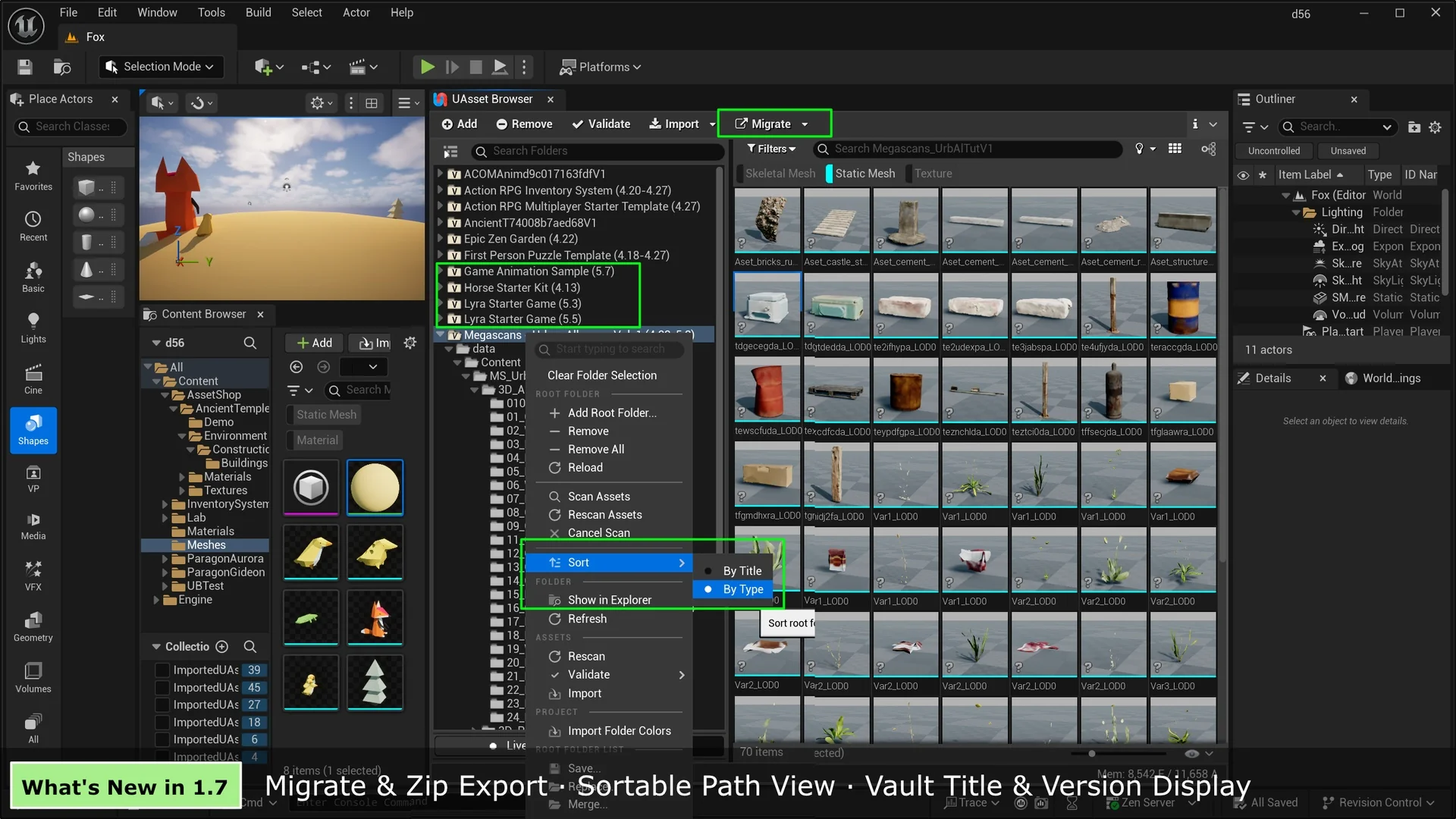 The creator has consistently improved the tool with several meaningful updates. Version 1.5 introduced an audio preview feature, allowing users to play SoundWave assets directly without importing them first. Visual organization has also been enhanced with color-coded root folders that distinguish between project, vault, and plugin content. Moreover, status bar indicators now provide clear feedback during background scanning and revalidation processes.