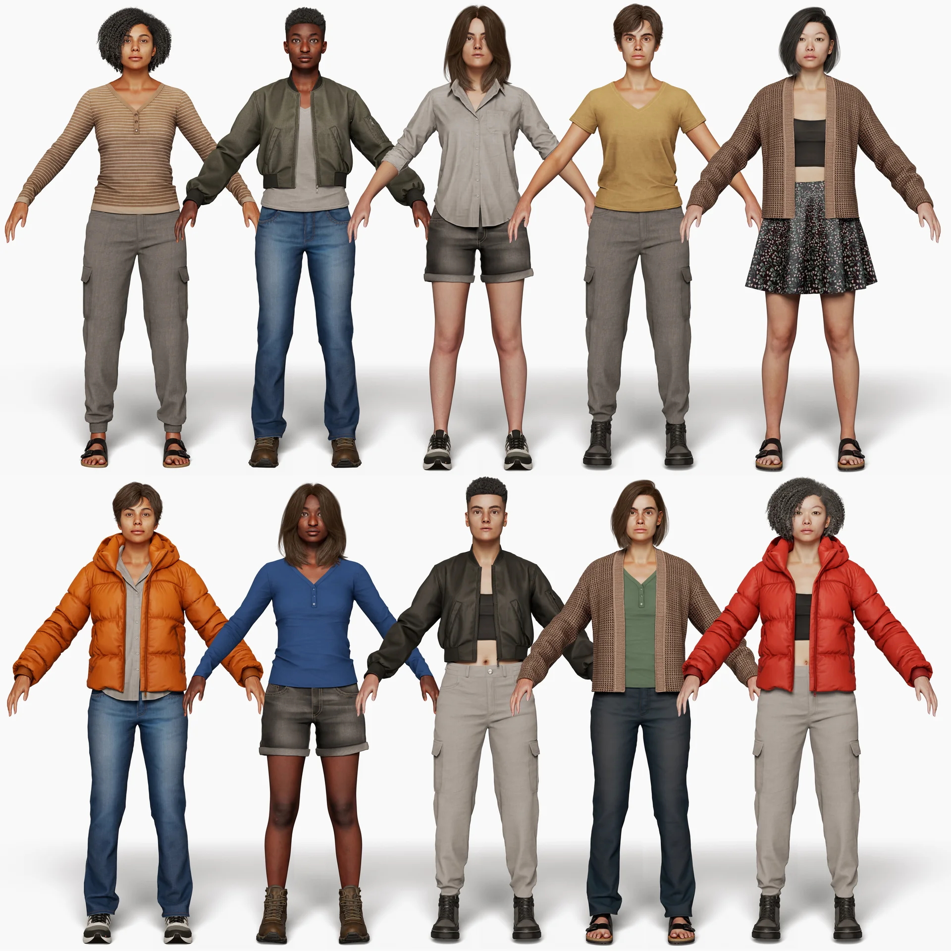 There is also a technical consistency point that can help in production. The pack includes 5 female body models that are retopologized with the same mesh, UVs, and point order. When multiple character bodies share that kind of structure, it can make asset management and look variation more predictable inside a project.