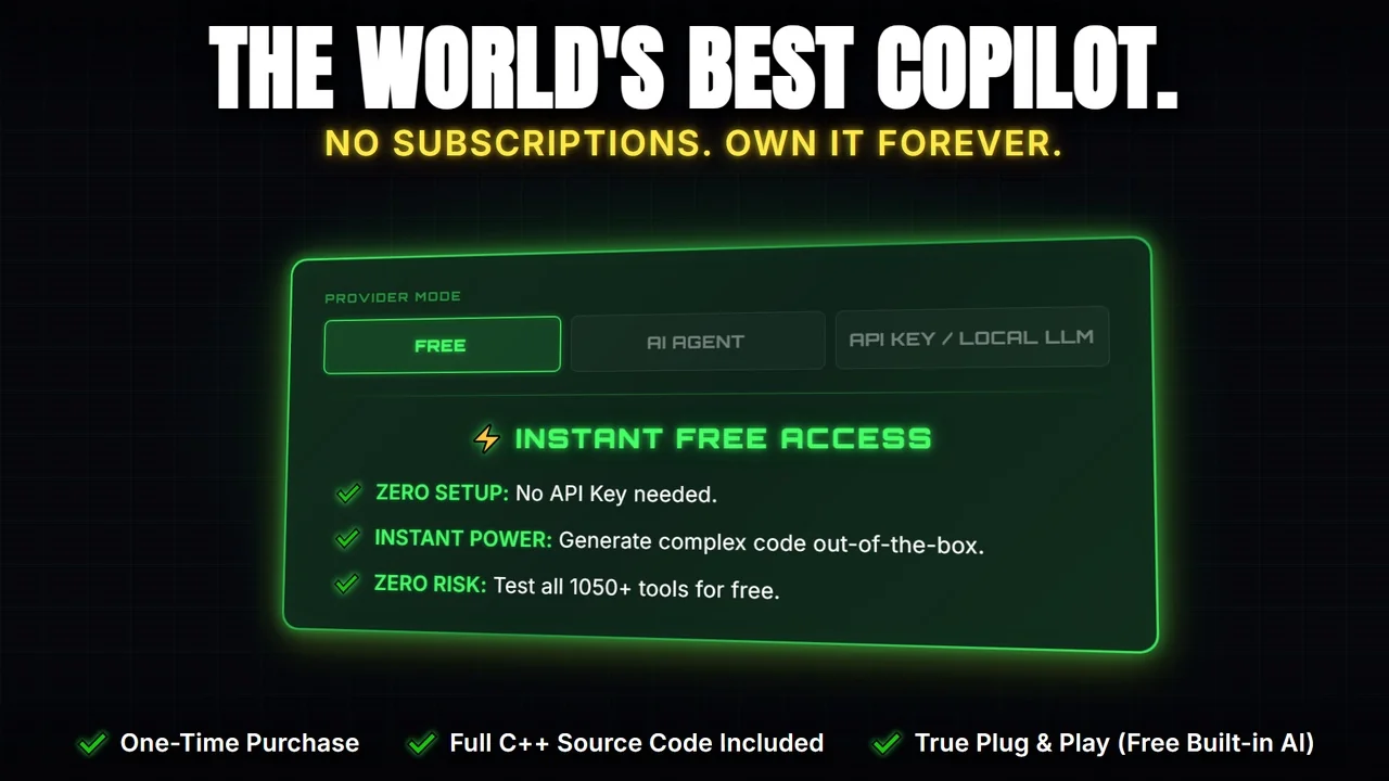 Voice control is part of the workflow as well. You can talk to the engine hands-free, record through a microphone with Speech-to-Text using Whisper, and hear responses through six adjustable TTS voices. For AI setup, it starts with two free-tier slots using real models and no API key is required to begin. Up to nine API keys can be configured with hotkey switching, and the supported options include Claude, OpenAI, Gemini, DeepSeek, OpenRouter, and local LLMs such as Ollama and LM Studio. The plugin can also run Claude Code, Codex, GitHub Copilot, and Gemini CLI agents at the same time inside the editor through MCP access to the available tools.