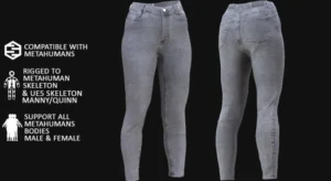 Looking for professional-grade clothing for your MetaHuman characters? These rigged jeans offer full compatibility with all body types and UE5 skeletons, featuring high-quality 4K textures and PBR materials.