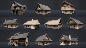 Collection of 10 generic enterable houses and huts. All materials are tiled/seamless, so you can apply any of your own (or quixel) tiled materials to get unique result. Prepared for AAA third/first-person exploring or top-down view. Whats included? – 10 enterable houses – 5 doors (can be used also as