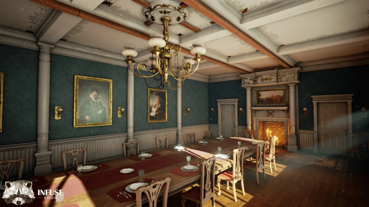 We are proud to introduce our Victorian style banquet hall, a beautifully crafted interior environment pack. Featuring dining room props, light fixtures, furniture, fireplace, and paintings.