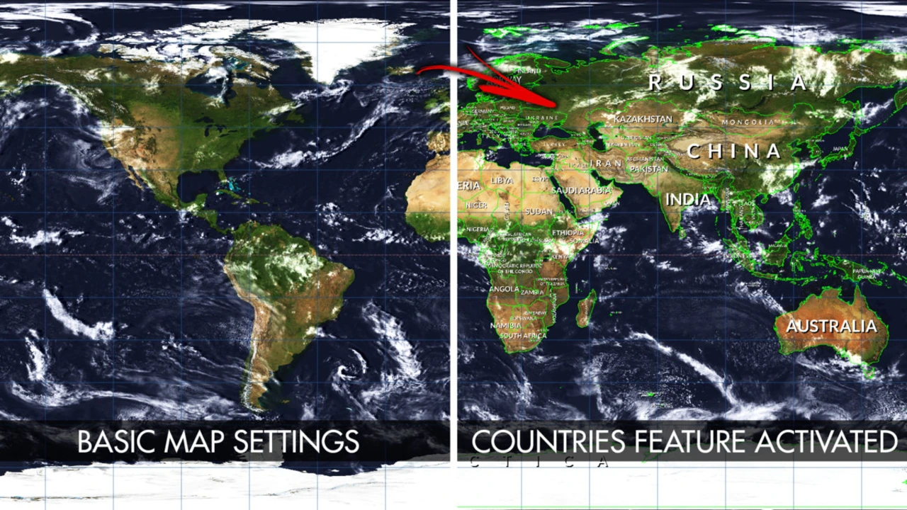 - Massive Geographic Database: Procedurally draws the frontiers of 241 countries, 4112 provinces/states, and 7144 of the world’s most populated cities. Includes two levels of frontier detail for different scales.