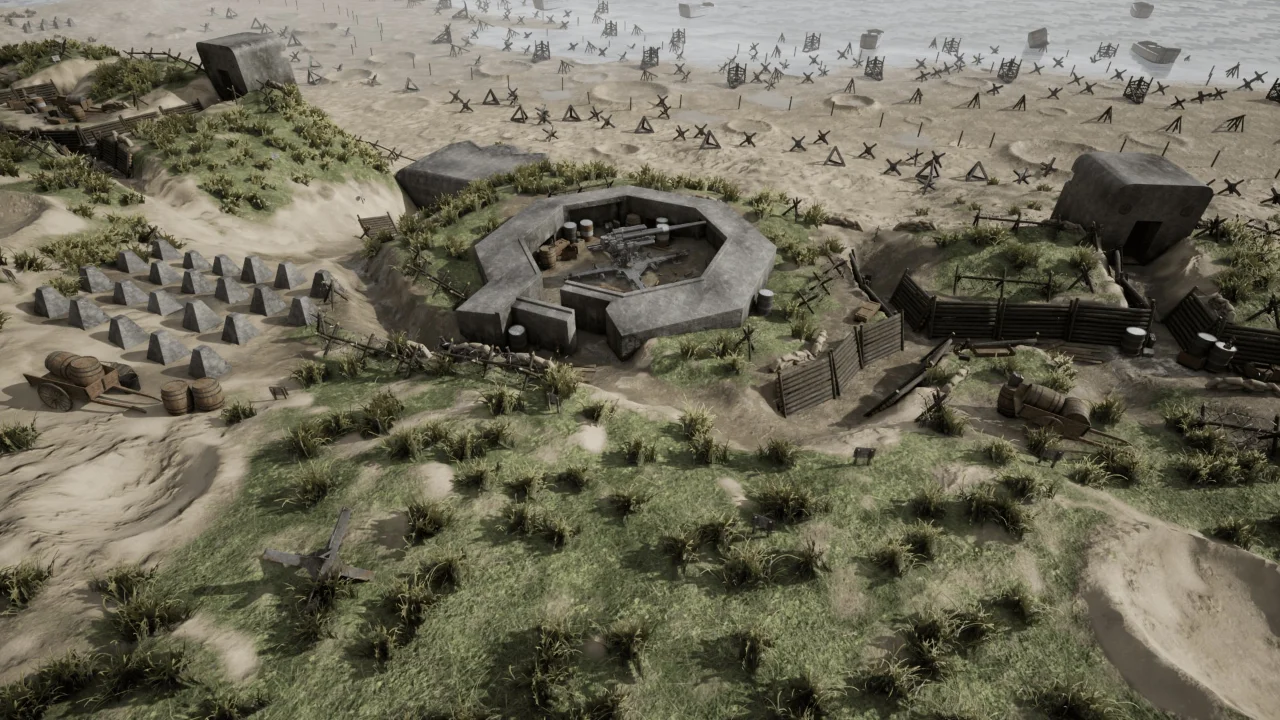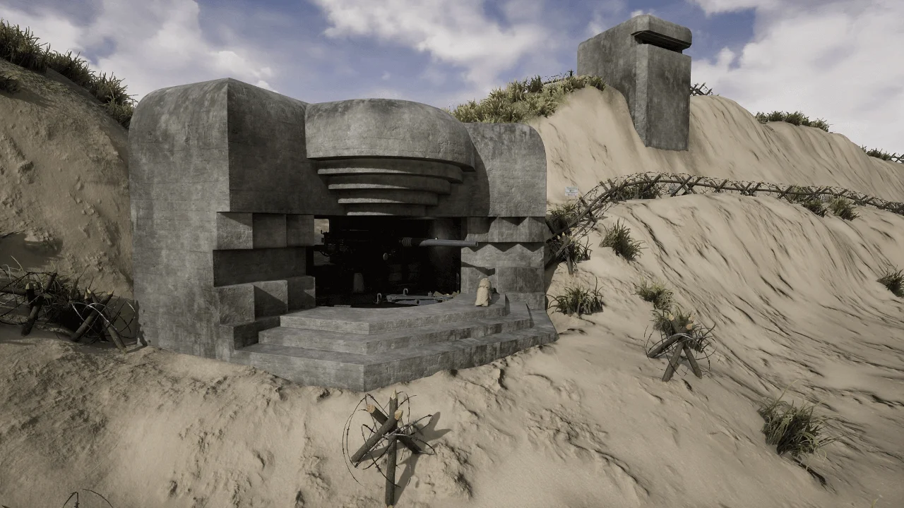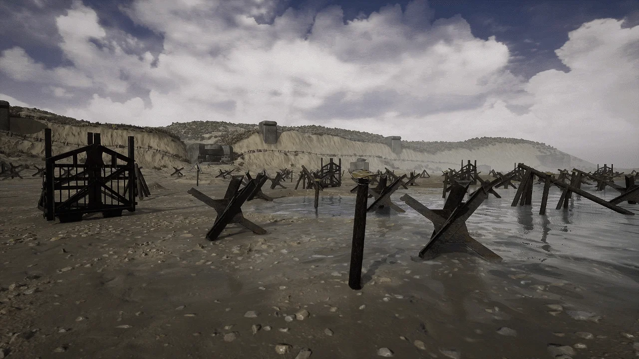 Realistic WW2 beach invasion environment with coastal guns and defenses, including machine guns, cannons, bunkers, landing crafts, several types of concrete, steel and wooden barriers and other props. The beach itself is based on the real Atlantic Wall beaches that stretched from France to Denmark and Norway. The project uses Unreal’s water plugin, so you should enable it in your project before you migrate the level.